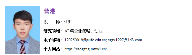[3] 于晓宇,曹港*,蒋宗寰,杨俊. 人工智能与创业的交汇:研究述评与展望. 外国经济与管理. 2025, 47(04): 80-98. (CSSCI, FMS T2) (荣获2023中国技术创新与创业学术年会优秀论文)